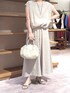 【ブラウス】Fサイズ さらさらのリネン素材で、 着るごとに柔らかく馴染んでいきます。 裾のリボン紐で丸みを出せて、ボトムにインしなくてもブランジングしているみたいに着られます。 フレンチでノースリーブみたいに涼しいけど、肩周りが隠れるのもうれしいです。 【パンツ】1サイズ着用 ブラウスと同素材で、速乾性があるので猛暑の日でも快適です。 セットアップで着ると、天然素材ですがほっこりせずにきちんと感が出ます。 ウエストは優しいゴム。スカートのようなフレアなシルエットで、身体のラインが出にくいです。 【バッグ】 まぁるいフォルムがかわいいボストン。 レザーできちんと感がありつつ、軽さもあり、 マチがしっかりあるので日常使いしやすいです。肩がけも斜めがけもできるストラップ付きなので、両手が開けられて便利! 上部にある縦型ポケット2つに、すぐ取り出したいスマホやリップなどが入ります。