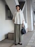 【ジャケット】 麻混で軽やかな着心地のジャケット。 透けないくらいのメッシュ生地です。 ゆったりした風通しの良い素材なので、夏の羽織りに便利です。シワにもなりにくいので持ち歩きにも◎ カジュアルなコーディネートにも大人世代はこういうジャケットを羽織るだけできちんと見えるので、必須アイテム! セミフォーマルやお仕事用にも重宝しそうです。 【カットソー】 柔らかく、サラサラな着心地です。ドルマンスリーブでゆったりしており、肘まで隠れるから羽織りなしで真夏も1枚で着られるのが嬉しいデザインです! 裾は異素材切り替えで程よくデザイン性もあり、きれいめな雰囲気なのでお仕事着やお出かけに幅広いコーディネートに頼れる1枚になること間違いなしです。 【パンツ】1サイズ着用 ウエスト総ゴムで腰からヒップ周りはゆったりしているので、体のシルエットを拾わなくて楽な穿き心地です。 足幅は広めですが、落ち感があるのでスッキリ見えます。 数年前にリアルバイしましたが、真冬以外はずーっと使えて便利でした。 シワにもなりにくいです。 164cmで1サイズは着丈もピッタリです!