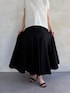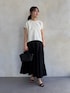 【tops】 ◻︎コクーンフレンチブラウス freeサイズ 立体的なコクーンシルエットのフレンチブラウス。 前側は裾が山なりで後ろ下がりになっているため、インせずにすっきりバランス良く着ることが出来ます✨ 1枚でサマになるので、キレイめコーデにはもちろん、デニムなどカジュアルに普段にも合わせやすいです◎ 【skirt】 ◻︎マチキリカエボリュームスカート freeサイズ フレアシルエットが特徴的なロングスカート。 腰下位置から生地が切り替えられているので、 程よくボリューム感はありつつ、落ち着いて見えるデザインです。 ウエストは左サイドにフックとファスナーが付いており着脱が楽で、後ろ側がゴム仕様になっています!