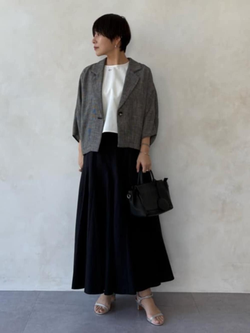BEARDSLEY(BEARDSLEY)のテーラードジャケット「ハーフスリーブツイードジャケット」を使ったコーディネート