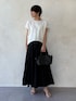 スタッフ159㎝ ジャケット Fサイズ 透け感のある素材で、少しコンパクトなデザインになります。 スカートやワイドパンツ、ワンピースにもオススメです◎ トップス Fサイズ 透けにくい白なので、1枚でも安心です。 ジャケットのインナーにも使いやすいです。 丈もインしなくていい長さなので、ワイドパンツやスカートにも◎ スカート Fサイズ 生地をたっぷり使った、動きの出るデザイン。 横側にファスナーと背中がゴムになってるので、着脱も楽にできます。 裏地付きになります。 少し丈が長めなので159㎝でヒールを履いて合わせています。 落ち感があって、スッキリ履けます。