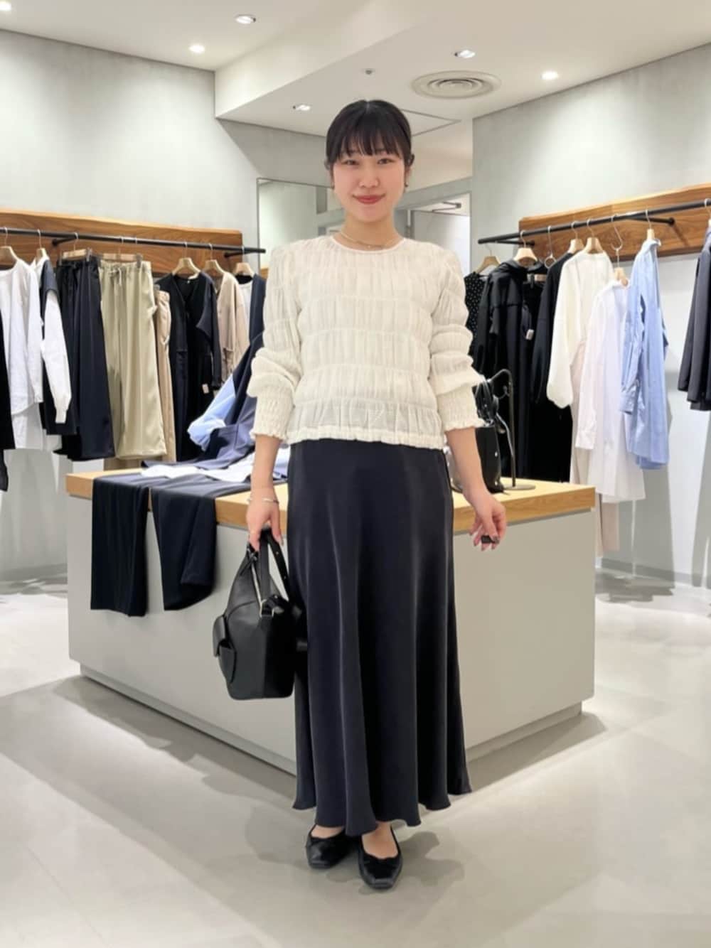 【 tops 】freeサイズ 綿素材でとっても着心地の良い シャーリングブラウス。 低身長でもすっきり着れる丈感で、 ボトム選ばずご利用いただけます。 袖口にはゴムが入っており、たくし上げしやすい◎ 【 skirt 】0サイズ ・洗濯:手洗い可◎ 151cm低身長の私が4色買いした サイズ選べる 美シルエットスカート。 落ち感のあるシルエットで、 揺れ感が素敵な1枚。 小柄さんでもすっきりご利用頂けます。 2サイズのお作りで、151cmで0サイズ着用。 くるぶしあたりの着丈で 引きずることなく、 フラットシューズでも問題なく履けました◎