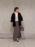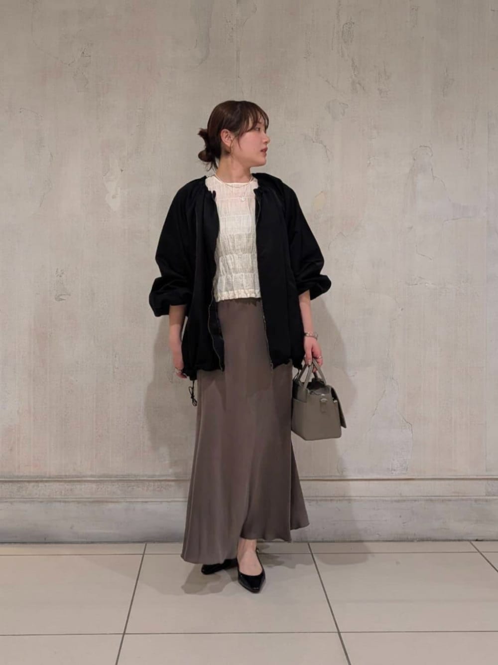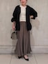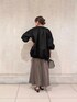【トップス】カラー:オフホワイト 伸縮性抜群のシャーリングブラウス。 柔らかいコットン素材なので肌あたりよく ストレスフリーにお召いただけます。 コンパクトな着丈でスカートやハイウエストのパンツ、 ワンピースの羽織としても大活躍。 骨ストさんはボタン側を前にして少しボタンを開けて お召いただくとスッキリ着こなせます。 手洗い可◎ 【アウター】 カラー:ブラック 立体感のあるナイロンブルゾン。 ギャザーが襟元、袖、裾にたっぷり施してあるので、 女性らしく着られます。 ナイロン素材なので風を通しにくく、 裏地もしっかりしてい るので肌寒い3月頃から、 梅雨の時期まで長い期間着ていただけます。 身長160cmでヒップがギリギリ隠れる丈感。 長すぎない丈感なので、 どんなボトムスとも合わせられます。 【スカート】 カラー:ブラック サイズ:1 光沢感があるマーメイドシルエットのスカート。 滑らかな肌触りで着心地抜群。 ウエストはゴム使用で、 内側にリボンも付いているので調節が可能。 ご試着された皆さんがスッキリ見えると 絶賛されているスカートです! 手洗い可◎