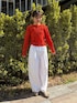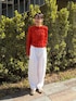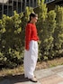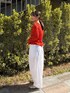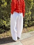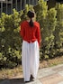 【トップス】 軽やかで通気性がよく、ストレスフリーな着心地が魅力のシャーリングブラウス。 コットン100%の柔らかな生地にワッシャー加工を施し、コットンとは思えないほど伸縮性の高いアイテムです。 一枚でも様になります。 コンパクトな着丈で、伸縮性のある生地なので、よく伸びて体にフィット。小柄さんにもおすすめです。 【パンツ】着用サイズ:0 独特な加工をしたナチュラルな風合いが魅力のパンツ。バレルシルエットが旬な雰囲気を演出します。 149cmで素足ではいて床につくかつかないかくらいの着丈なので、靴をはいてちょうどいいくらいだと思いました。ウエストもゴムなのでベルトなしでも綺麗に着用できました。
