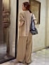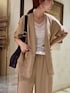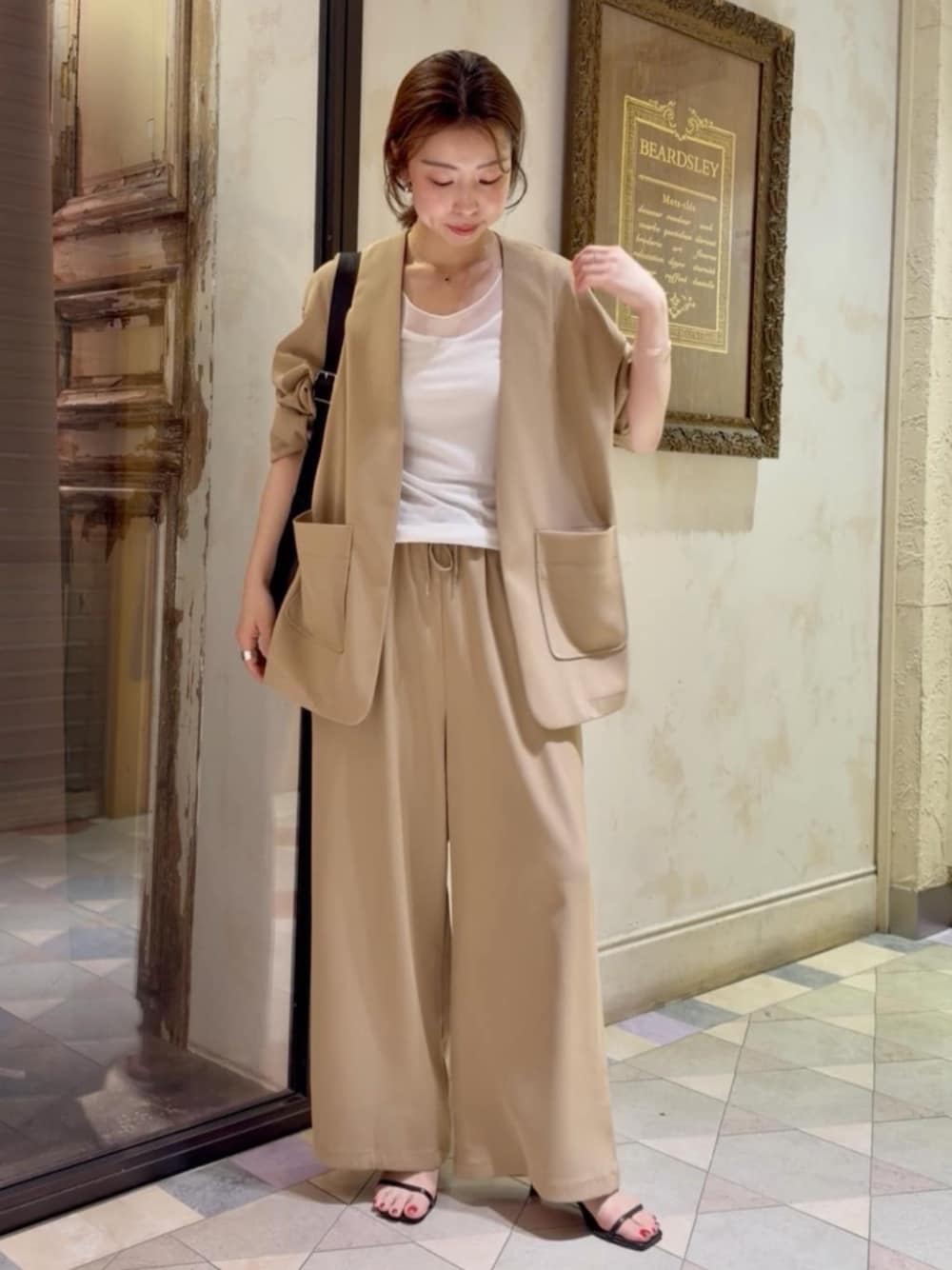 【ジャケット】Fサイズ シワになりにくく程よいハリのあるツイル素材。 ストレッチ性を備え、長時間の着用も快適です。 460gと軽いのも持ち歩きにも嬉しい◎ お仕事シーンはもちろん、 セレモニーやきれいめなお出かけにも幅広く活躍します。 【インナー】Fサイズ シアー素材とカットソーがコンビになったタンクトップ。 コーデに抜け感をプラスしてくれます。 肌触りも心地よく、 春夏1枚は持っておきたいインナー 【パンツ】0サイズ 《LIVETART》 ツイル素材が軽やかなワイドパンツ。 3サイズ展開とサイズが豊富なのも嬉しい。 154cmで3cm程のヒールを履いてます。 ウエスト位置を少し上げるとフラットシューズでも引きずらない丈感でした◎