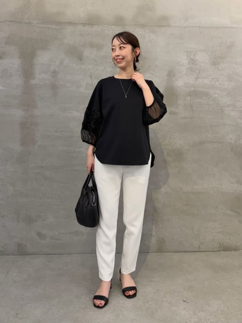 【トップス】着用サイブ:F 花モチーフのフリル刺繍が魅力のプルオーバー。 見頃は伸縮性のある生地感で着心地良いです◎ 裾のラウンドカットが、タックインしなくても全体のバランスをよく見せてくれます。 カジュアルにも、キレイめに合わせてお仕事でも万能に使えそうです。 【パンツ】着用サイズ:0 リネンのような風合いを楽しめる、スラブ感のあるポリエステル素材を使用したトラックパンツ。 ポリエステル素材なのでシワが気になりにくいのも嬉しいポイント◎ ホワイトは裏地付きで、透け感を気にせず安心して穿いていただけます。 154cmで0サイズを着用し、くるぶしが隠れる丈感です。