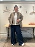 【blouson】 着用サイズ : F ギャザーをふんだんに取り入れ、立体感あるシルエットが目を引くバルーンブルゾン。 前後差のある裾ラインが動きをプラスし、羽織るだけでスタイリングが決まるアイテムです。 洗濯 : 手洗い可 伸縮性 : なし 裏地 : あり 【pants】 着用サイズ : 3 ビアズリー人気のウエストリブパンツ。 一番大きい“3”サイズを着用しています。 166cmの私は今までのサイズだと丈が足りなかったのですが、今回はフルレングスで履けました。 また、腰回りも今までよりも余裕があります。 洗濯 : 手洗い可 伸縮性 : ウエスト部分のみあり 裏地 : なし