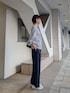 【カットソー】 透けない程度の薄手の生地。 袖にデザインがあるので、カジュアルになりすぎず大人も取り入れやすいです。 身幅はそこまで大きくなくスッキリ。 ボーダーは爽やかな印象になりますし、シンプルなコーディネートのアクセントになるのでやっぱり頼れるアイテムだなと思います。 【パンツ】TMサイズ着用 ストレートのシルエットで、スッキリ見えます。 生地感は微光沢で、キレイめに使いやすいです。 ウエストは総ゴムで楽ちん。生地は軽やかでサラッとしています。 164cmの私はフラットシューズでも床に付かないくらいのフルレングスになります。 少し短めにしたい場合はウエストを一折してスッキリ穿くこともできます! 【コート】 ナイロン素材でとっても軽く、シワも気にせず気軽に羽織れます。 ノーカラーで前がスッキリしているので、どんなスタイリングにも合わせやすいのが魅力です。 身長体型問わず、どんなシーンにも使いやすい着回し力の高いデザインです。 折り畳んで持ち歩きにも◎ 自宅洗い可能なのも嬉しいポイント!