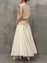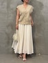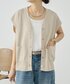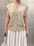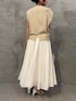 【トップス】 ハイゲージで滑らかな肌触りのニットベスト ボタンを閉じてプルオーバーのように着ると、Vネックがデコルテをきれいに見せてくれます。後ろの裾にスリットが入っているのもポイント。スカートと合わせると上品な印象になります。 【スカート】 軽やかでほんのりシアー感のあるフレアスカート 歩くとゆれるシルエットは華やかな印象になります。ウエストは総ゴムで、締め付けのない履き心地です。164cmでくるぶしくらいの丈感です。
