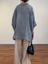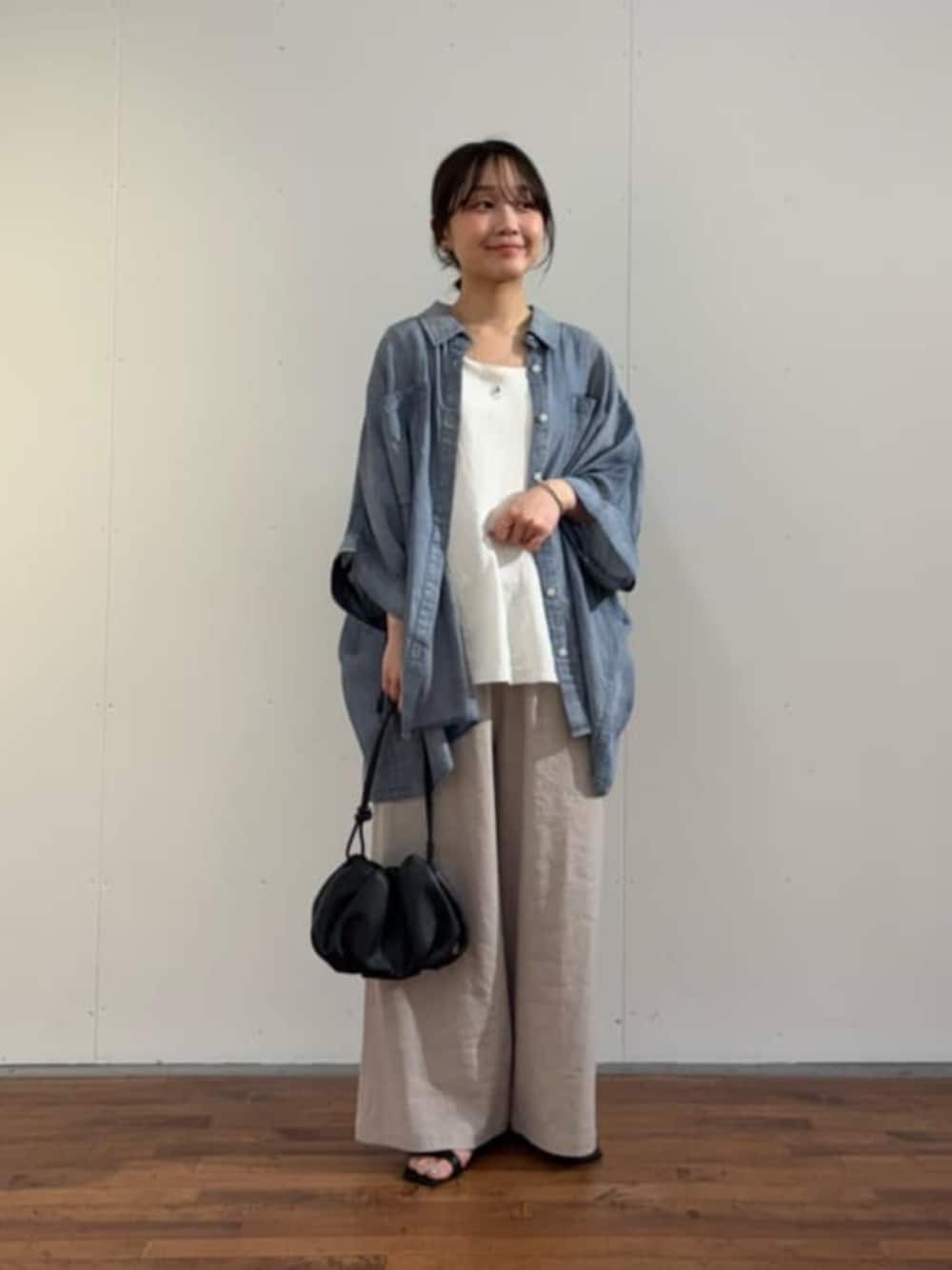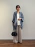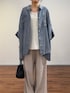 【シャツ】 大人気のシフォンデニムシリーズにポンチョシルエットのシャツが新登場。 シフォンのように透け感のある柔らかいデニム素材を使用。 今までのデニムのシャツのイメージを覆すような、なめらかで硬さのない素材感でストレスフリーに着られるのも嬉しいポイント。 ポンチョシルエットで身幅がゆったりしているので風を通して快適な着心地です。 ワイドパンツで合わせるなら羽織にしたりボタンをいくつか開けて抜け感を出して着るのがおすすめです。 【パンツ】着用サイズ:0 定番ウエストリブパンツのリネン素材。 リネンですがストレッチが効いていて、やわらかいので着心地も肌触りも良いです。 Tシャツ合わせなどシンプルコーデも涼しくかつオシャレ見えするので、リネンボトムは一本抑えておきたいアイテムです!