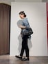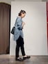 通気性のいいガーゼの様な軽さのシャツ。 夏は日除けにも使える便利な生地感です。 お洗濯もすぐに乾きます。 合わせたバッグは新作のボディバッグ。 今までよりも一回り大きなサイズで軽い羽織ものも入れられる大容量です。