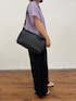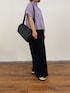パープルのカラーがアクセントになるポンチョシャツに履き心地抜群なワイドパンツを合わせました! 下半身の太さが気になる私ですが、 このパンツはすっきり見えで着痩せして見える! 涼しい履き心地でした◎ ボディバッグのラージサイズが遂に登場! A4サイズもギリギリ入るサイズ感で レギュラーサイズだと荷物が多い私には少し物足りなく感じていましたが こちらだと安心のサイズ感。 私のように荷物が多い方にはオススメのサイズ感です。