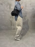 シアー感のある軽い着心地のデニムシャツに ウエストゴムの楽ちんなワイドパンツ。 ボディバッグのラージサイズが登場したので合わせてみました! A4サイズもギリギリ入るサイズ感で レギュラーサイズだと荷物が多い私には少し物足りなく感じていましたが こちらだと安心のサイズ感。 私のように荷物が多い方にはオススメのサイズ感です。