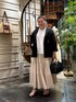 【スカート】2サイズ 待望の2サイズ!!!! フリーサイズは、私ちゃんと着れなくて 上から被ってきてきましたが、、、 2サイズはちゃんと下から履けます。 着丈もしっかりあるので安心丈です。 プリーツスカートですが、オチ感があるので着膨れせず着れるのが嬉しいです♩ 【ジャケット】 愛用中です。 ドルマンスリーブで、風が通るので 夏でも冷房対策として着ています。 シアなので、重たく見えなくて良かったです。 ドルマンスリーブが、二の腕が気にならず 脇汗も気にならなかったです。 ゆったりしているので、気になる所カバーしてくれます。 ボタン閉めれますよ! お尻が隠れるので、パンツスタイルでも安心な着丈でした!