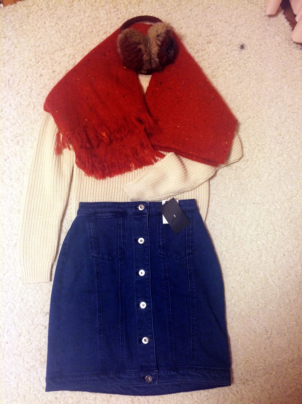この可愛いマフラーなんと990円でした、! 大好きなオレンジで気に入っます。 イヤマフもオレンジ(´-`).。oO(♡