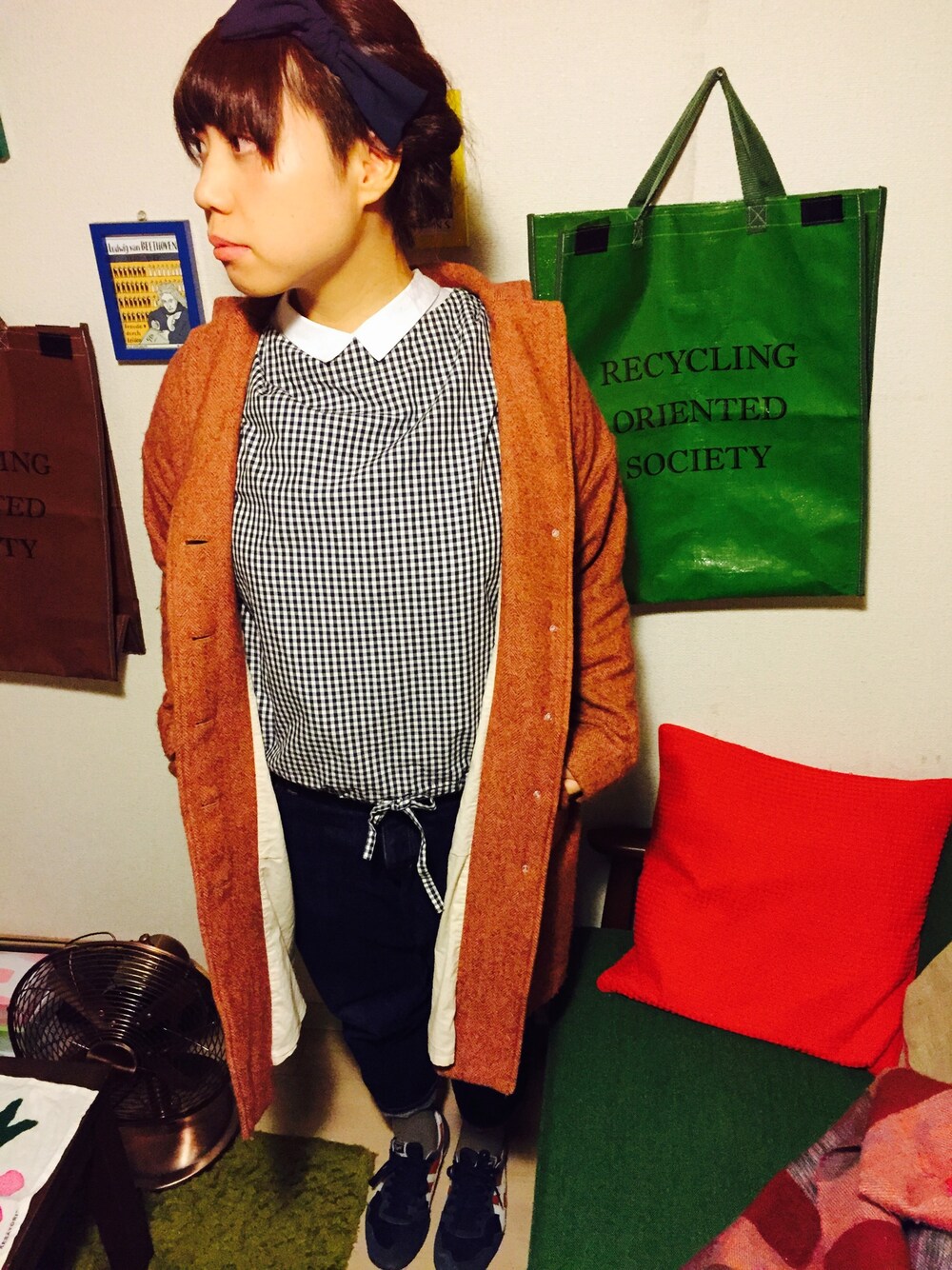 ブルー系のスニーカーを着用したレディースの冬コーディネートの1枚目の写真