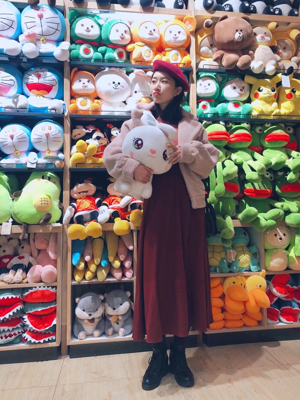 I’m wearing a red knitted dress to greet the coming new year~