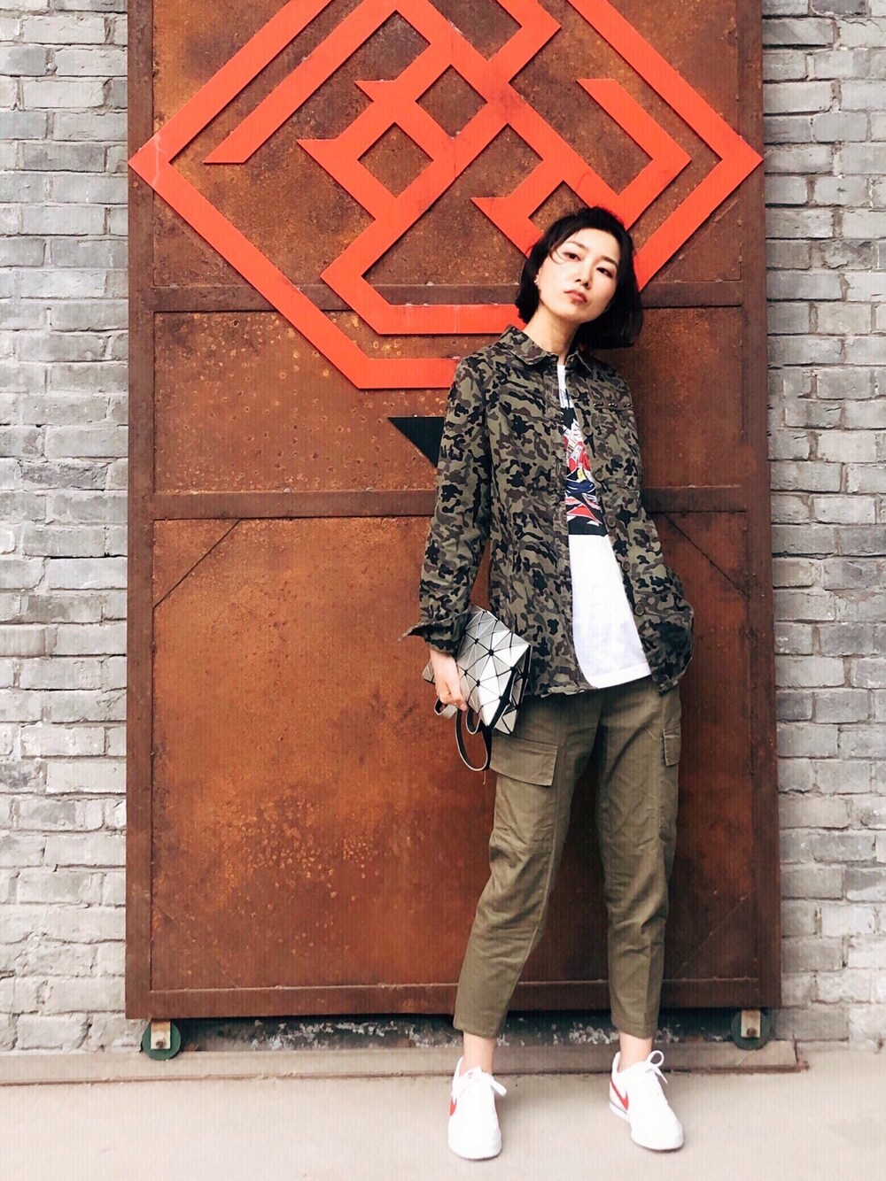 Cargo pants match a camouflage shirt reveals hard-edged look of neutral wind~