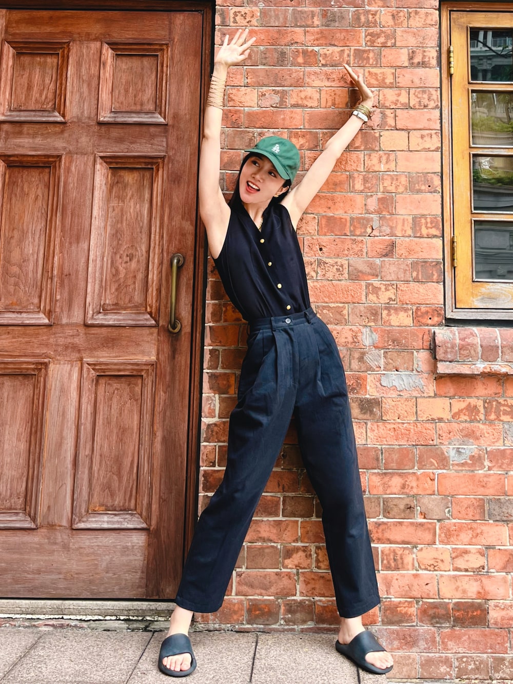 I dressed all in black, so I choose some green items for the total black~