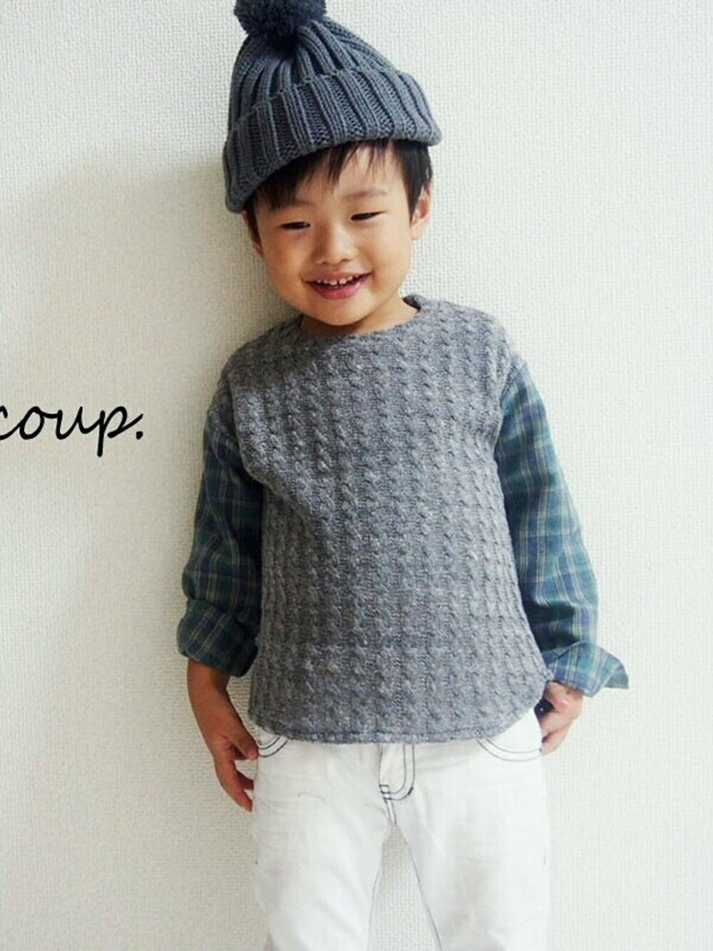 男の子の秋冬ホワイトデニムコーディネート♪ * ニット帽は立ち上がりの良い、しっかり生地です♡
