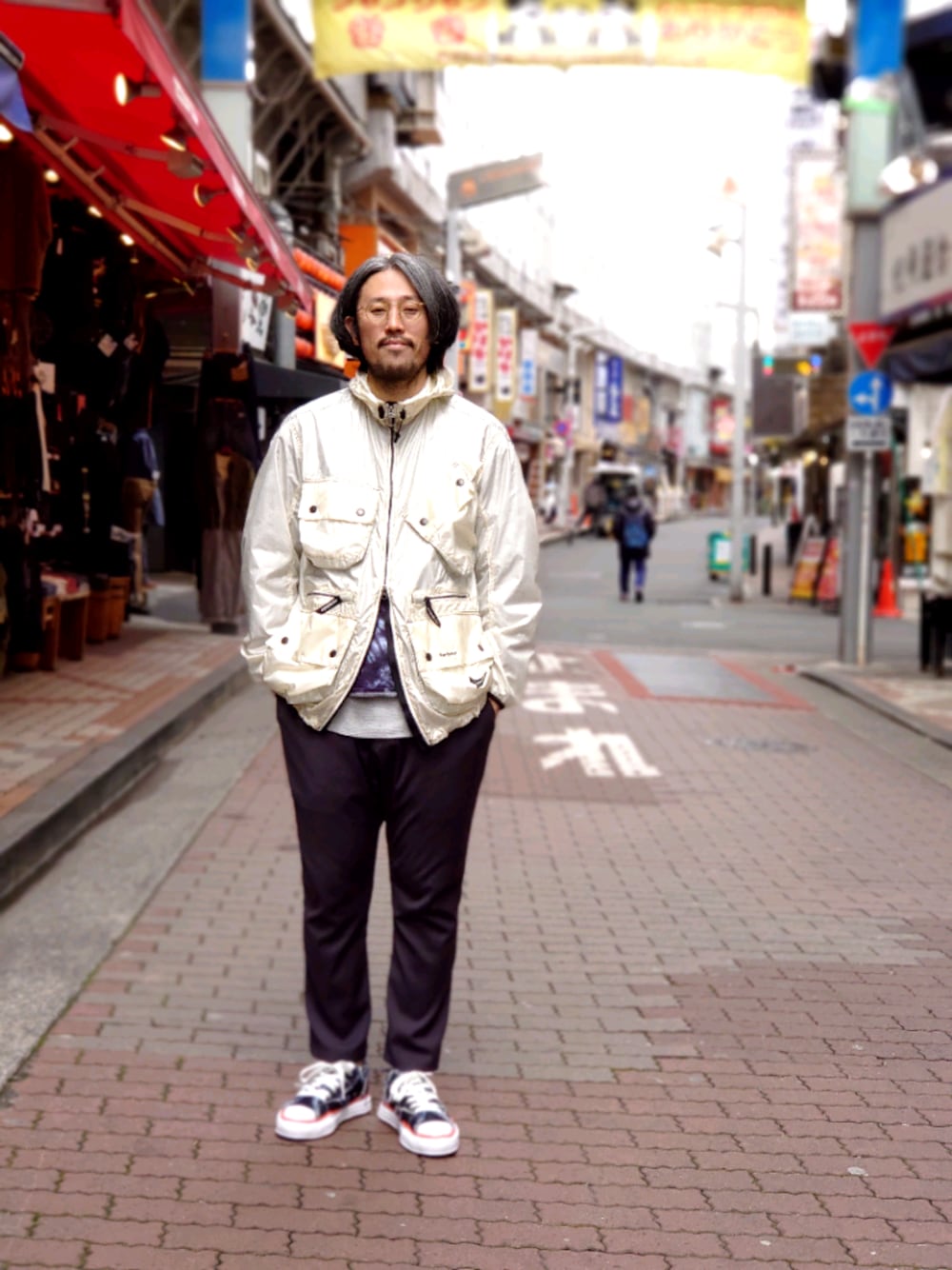 naou(BEAVER 上野店)のブルゾン「and wander × Barbour/アンドワンダー × バブアー babour shiny wind hoodie バブアー シャイニーウィンド フーディ」を使ったコーディネート