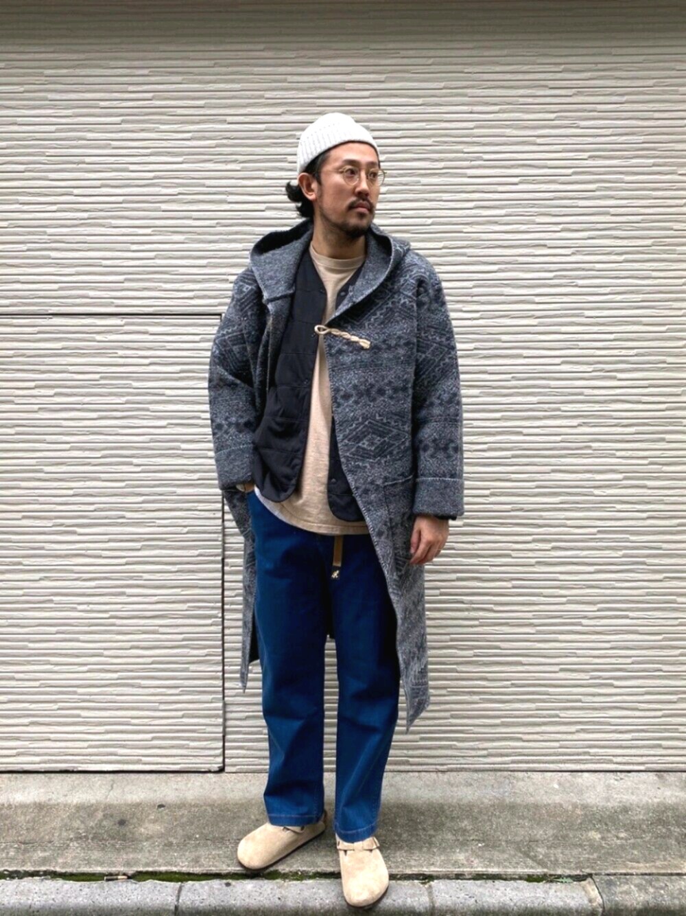 コートにレイヤード。