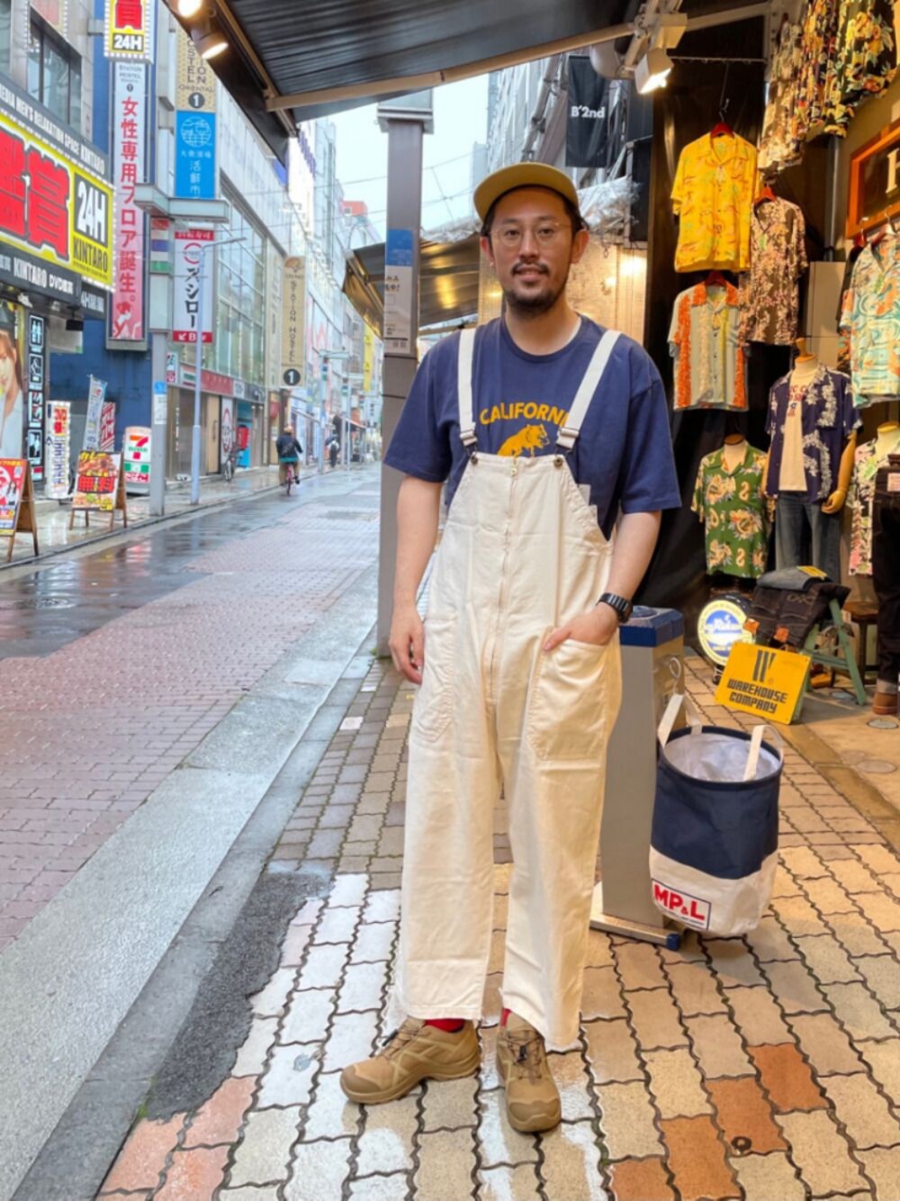 白いオーバーオール。