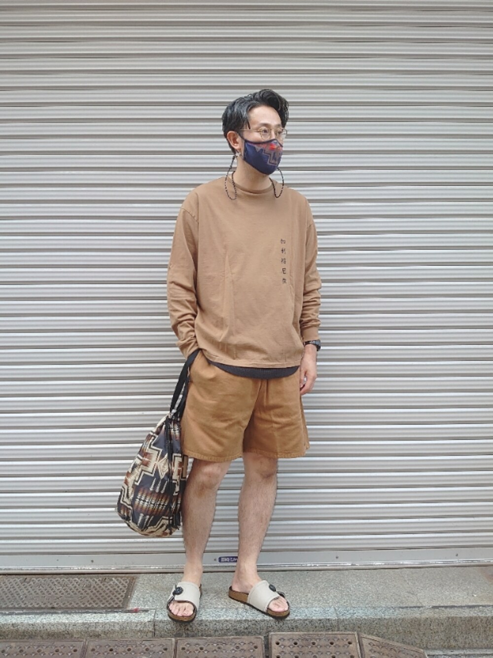 アラフォー大人カジュアルコーデ。 ワントーン編。 アクセントにPENDLETONのbagとマスク。 シンプルだからこそ小物で遊びを。