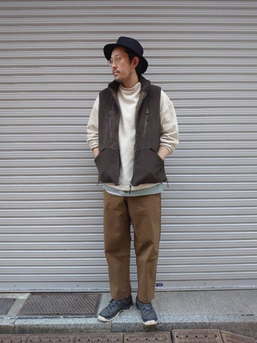 naou(BEAVER 上野店)のベスト「Abu Garcia × is-ness/アブガルシア×イズネス ABU-M909 CLOUD PADDING VEST クラウドパディングベスト 21AAB-0004」を使ったコーディネート