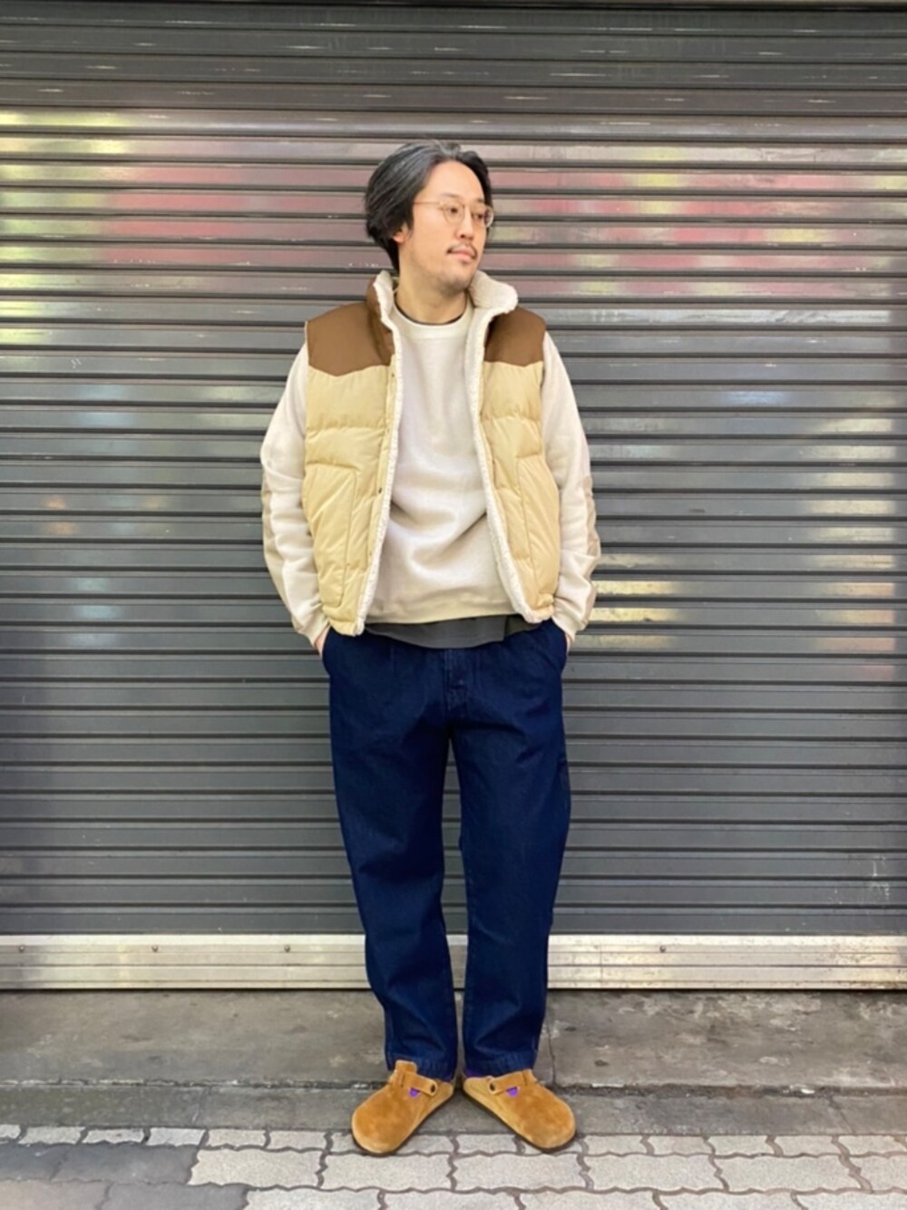 アラフォー ダウンベストコーデ