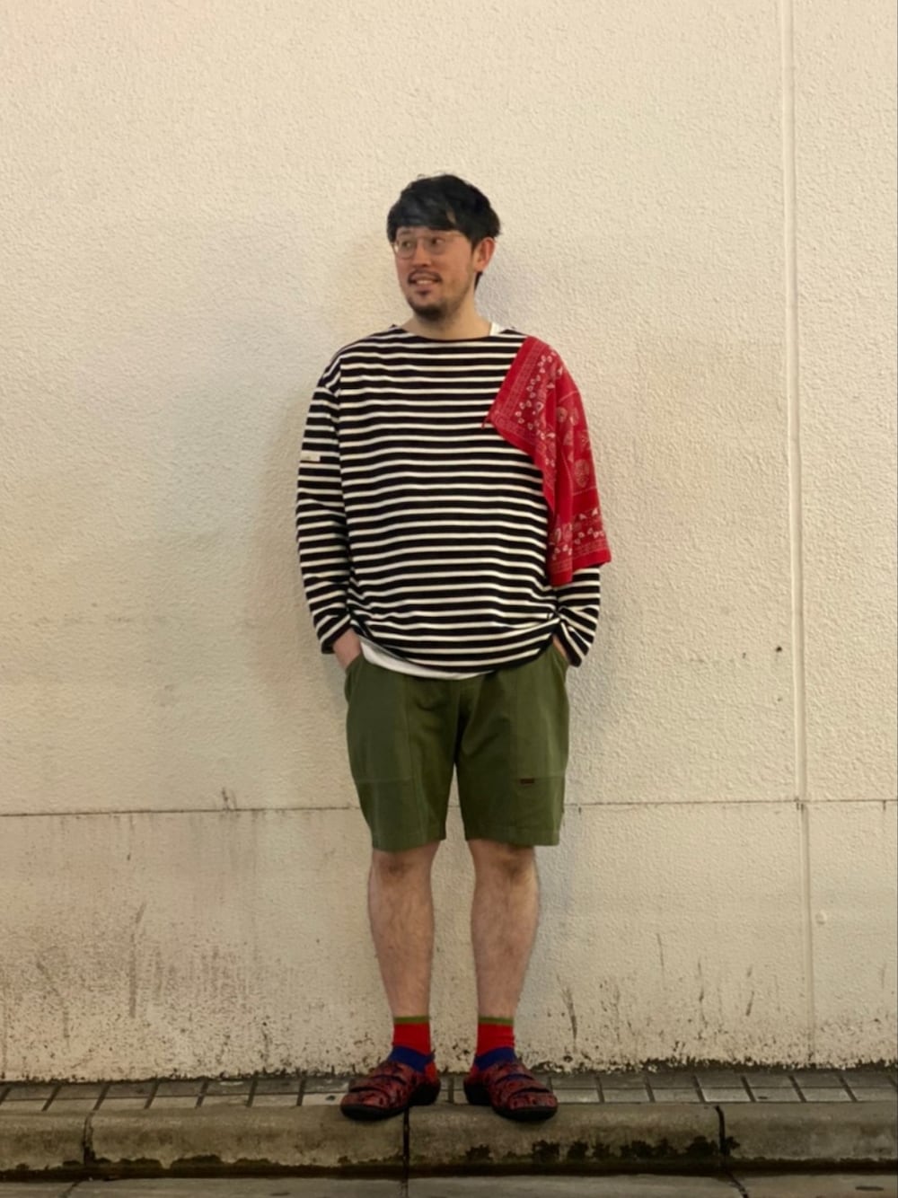 naou(BEAVER 上野店)のTシャツ/カットソー「KOTSUBO × cal o line/コツボ×キャルオーライン BANDANA BASQUE BORDER T バンダナバスクボーダーティー CKTW-210」を使ったコーディネート