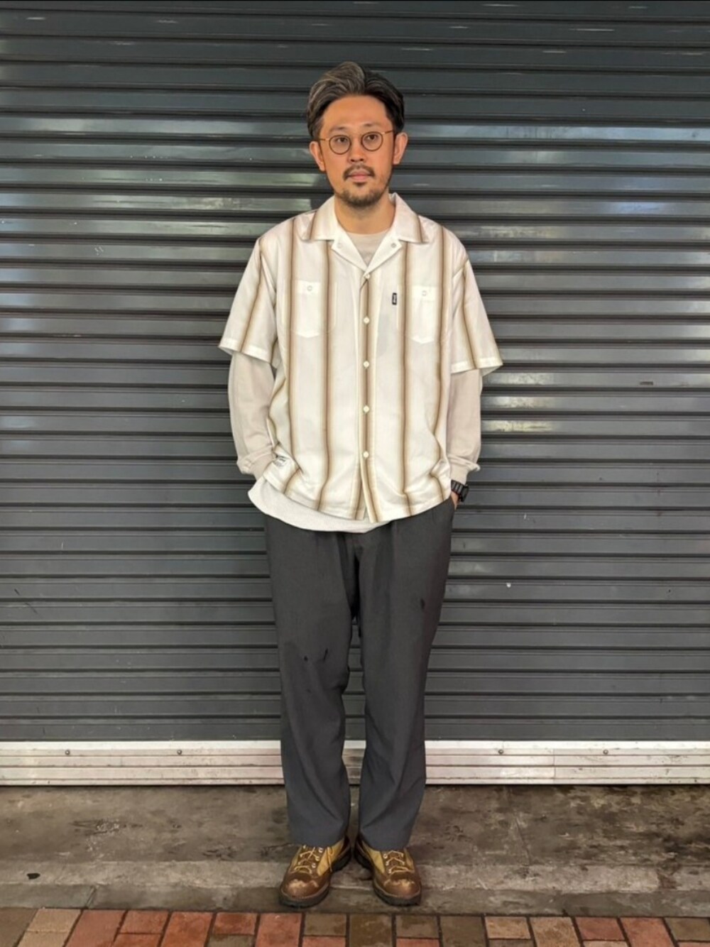 naou(BEAVER 上野店)のシャツ/ブラウス「Schott/ショット/STRIPE WORK SHIRT/ストライプワークシャツ」を使ったコーディネート