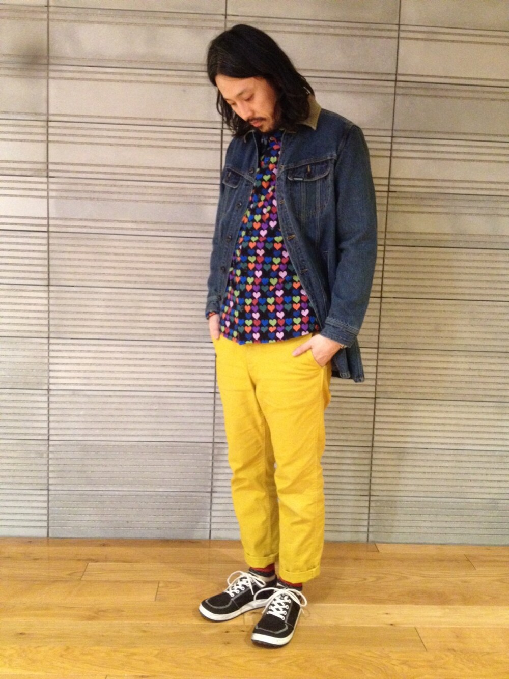 柄、色、デニム。三種類の組合せ。