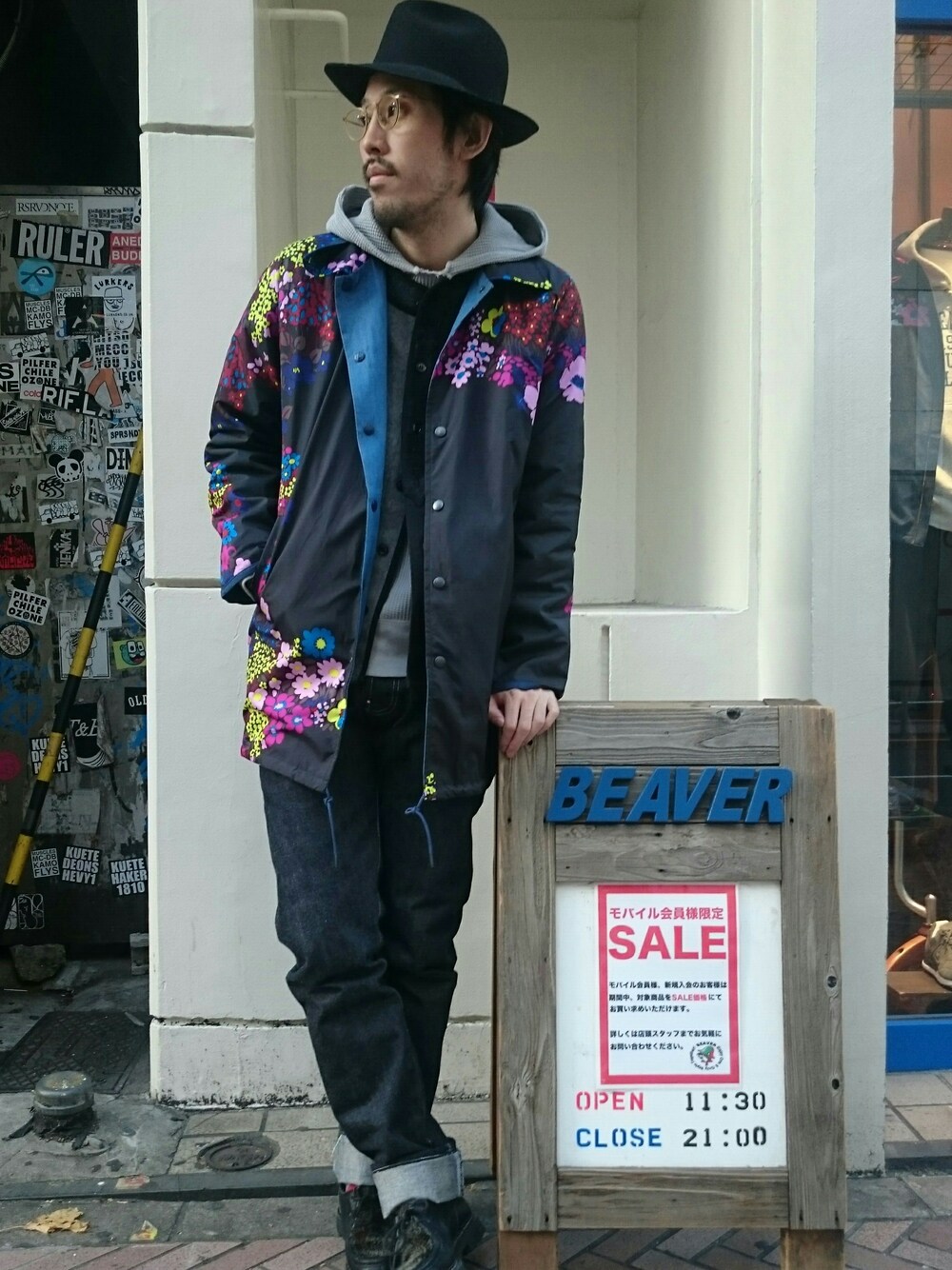 着用のコートはリバーシブル。 中はデニムになっています。 インナーにウール、インナーダウンを着れば今から春使えます!