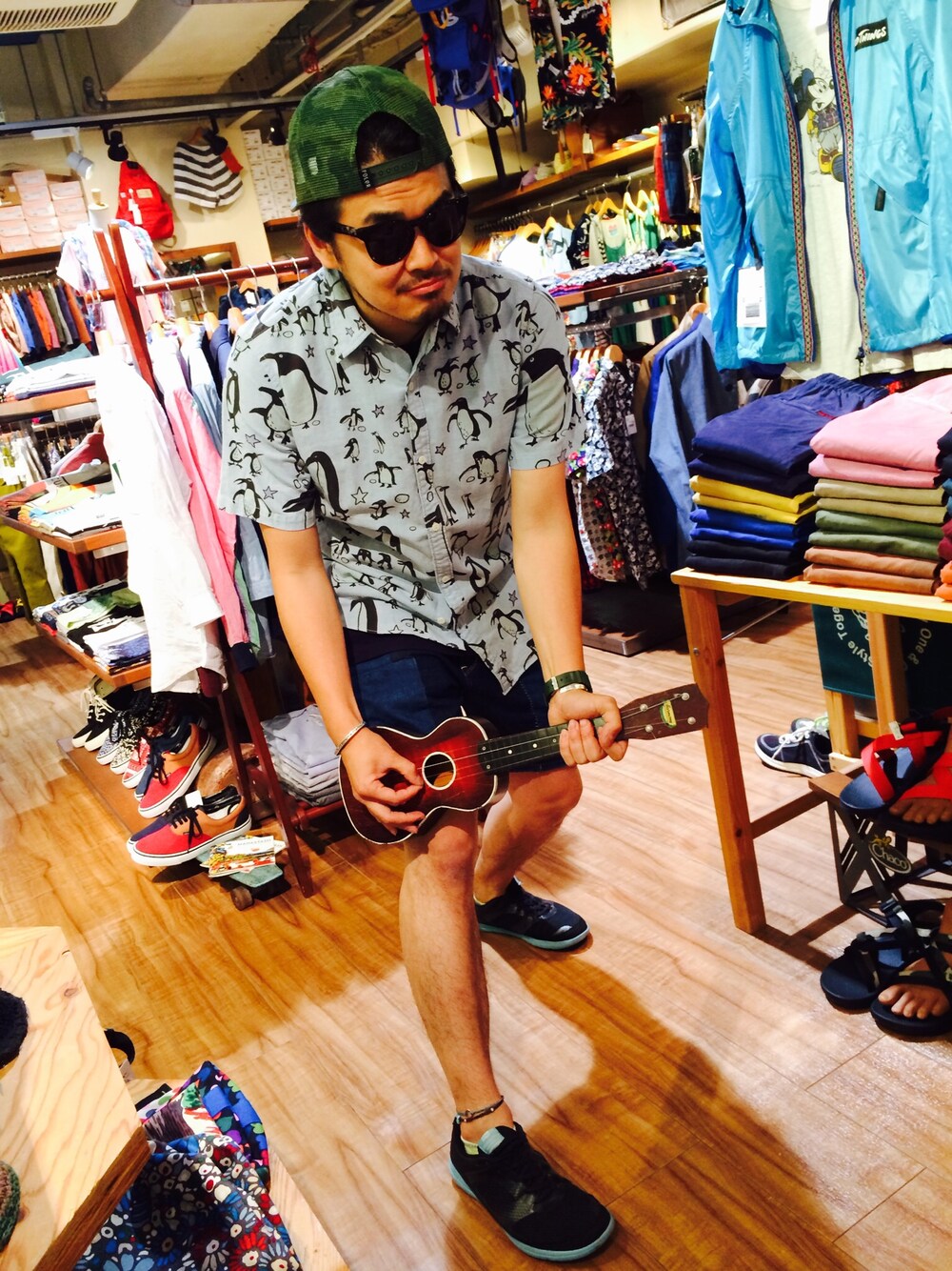ウクレレをベース風に。 ペンギンかわいいです。