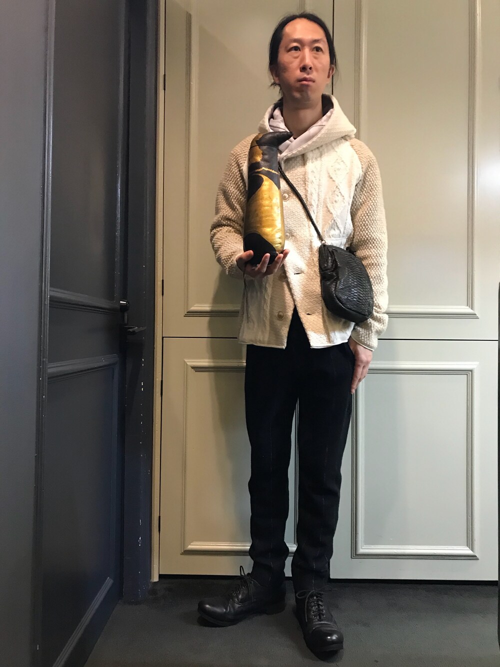 おかだ(ROYAL FLASH なんばパークス店)のカーディガン/ボレロ「『Safari 12月号掲載商品』ARMURE/アルミュール/RAWLIFE別注 3mix cable knit parka」を使ったコーディネート