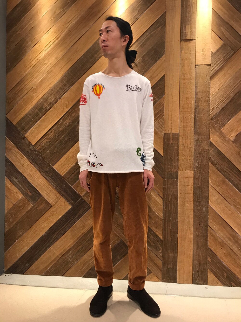 おかだ(ROYAL FLASH Luxury 南船場店)のTシャツ/カットソー「【RAWLIFE限定】『Safari 2月号掲載商品』birdog/バードッグ/hand embroidery cut&sewn -CARNIVAL-/手刺繍カットソー -CARNIVAL-」を使ったコーディネート