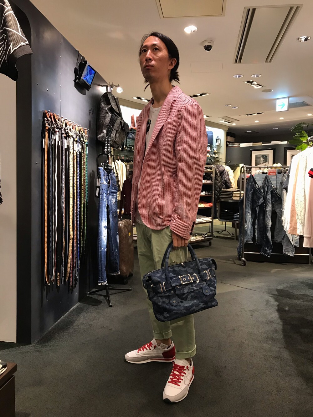 おかだ(ROYAL FLASH Luxury 南船場店)のハンドバッグ「vermilion/ヴァ―ミリオン/camouflage denim mini tote」を使ったコーディネート