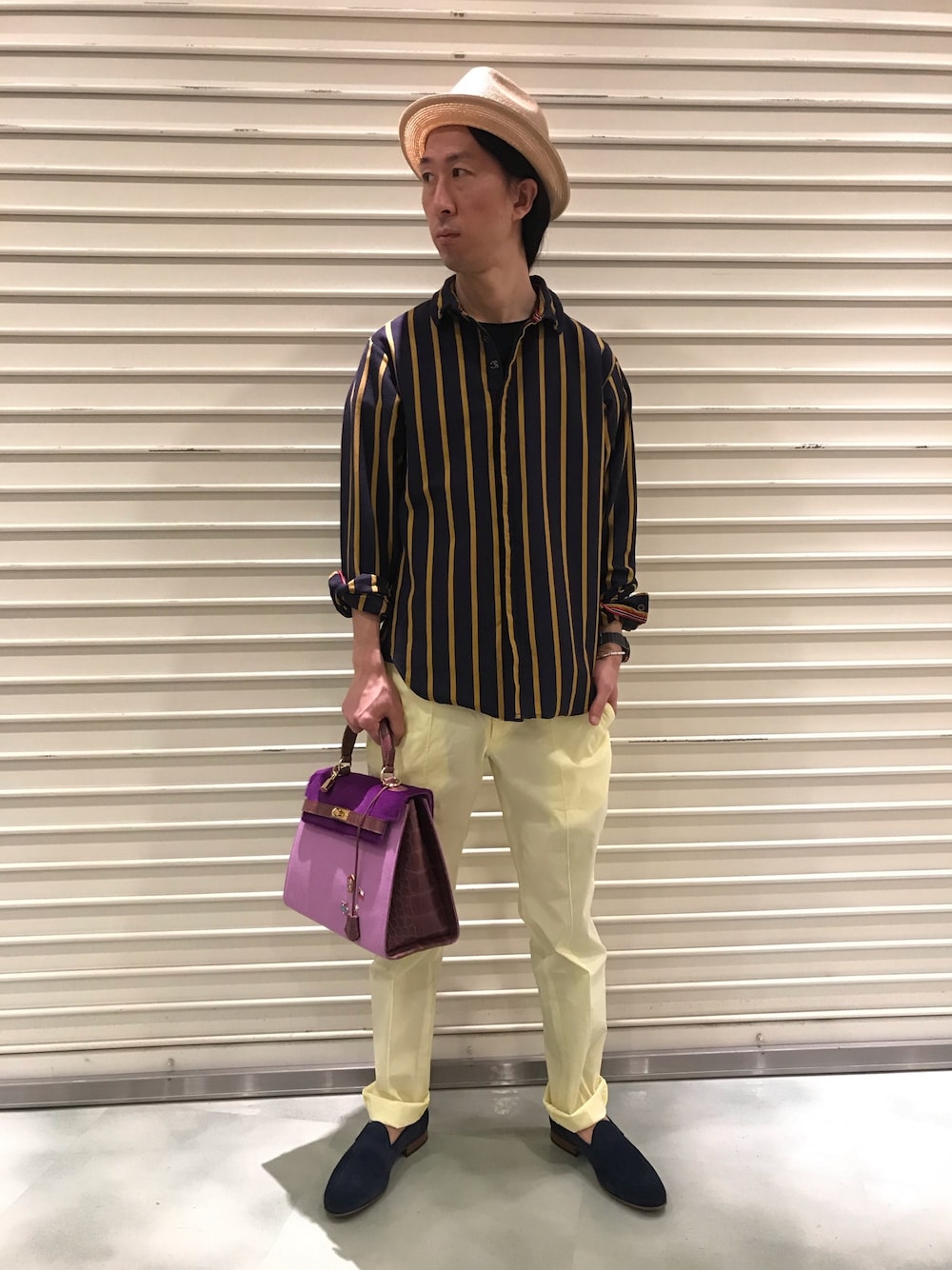 おかだ(ROYAL FLASH Luxury 南船場店)のシャツ/ブラウス「FranCisT_MOR.K.S./フランシスト モークス/Stripe Jersey cs Wired Shirt/ストライプジャージーCSワイヤーシャツ」を使ったコーディネート