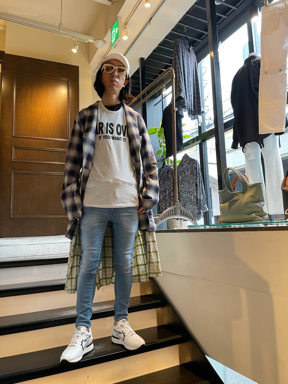 おかだ(ROYAL FLASH Luxury 南船場店)のTシャツ/カットソー「Johnson Motors,Inc./ジョンソン モータース/WAR IS OVER」を使ったコーディネート