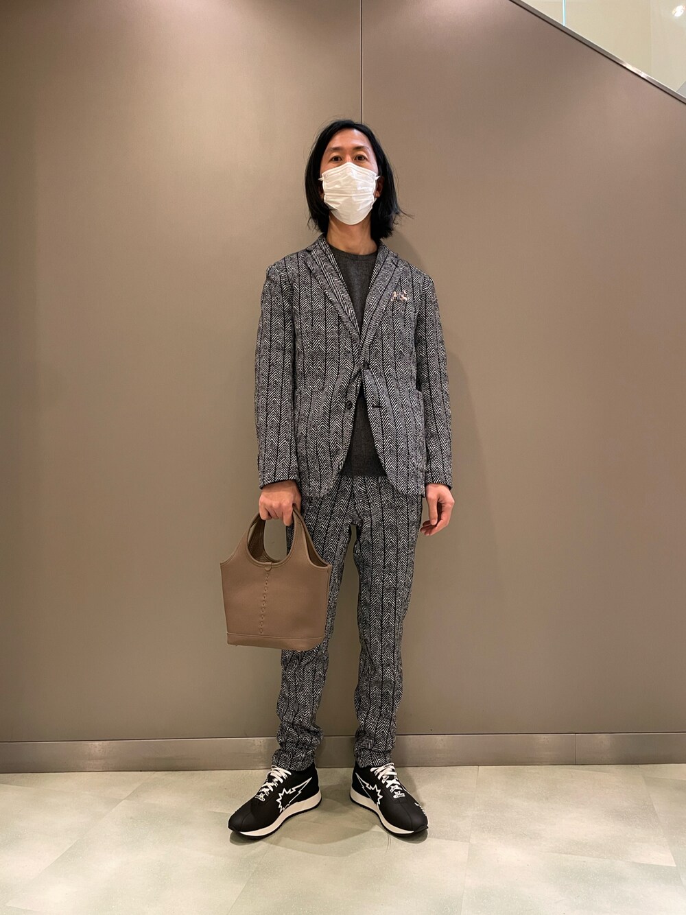 おかだ(ROYAL FLASH Luxury 南船場店)のテーラードジャケット「【新着】ヘリンボーンプリント裏フリースジャージジャケット」を使ったコーディネート