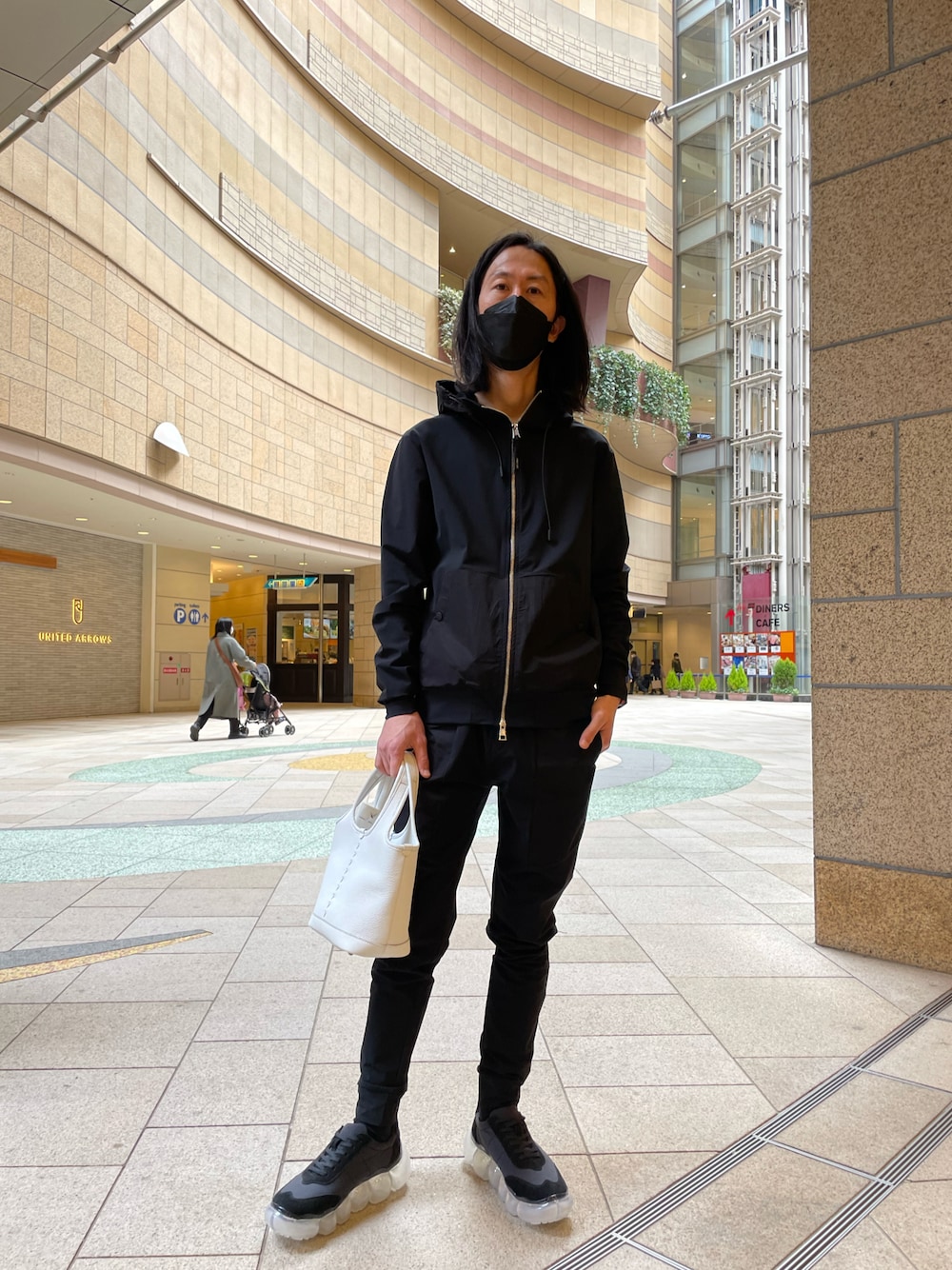 おかだ(ROYAL FLASH Luxury 南船場店)のパーカー「P.M.D.S./ピー エム ディー エス/GHISLAIN ストレッチナイロン切り替えパーカー」を使ったコーディネート