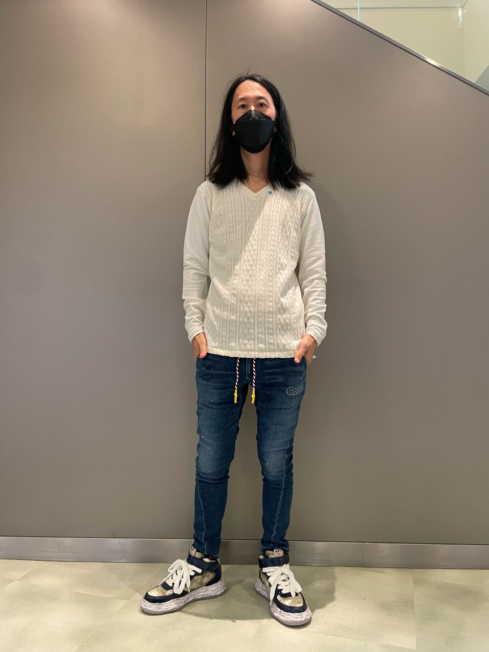 おかだ(ROYAL FLASH Luxury 南船場店)のTシャツ/カットソー「FranCisT_MOR.K.S. /フランシストモークス/ HITENTION CABLE KNIT V NECK LS /MC2978」を使ったコーディネート