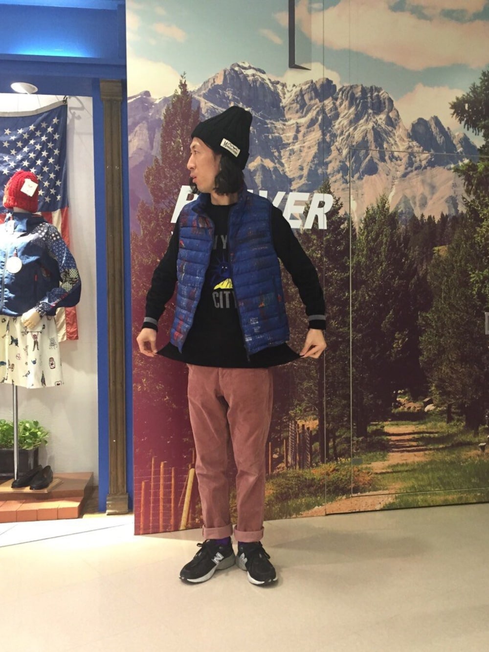おかだ(ROYAL FLASH Luxury 南船場店)のダウンベスト「BOHEMIANS/ボヘミアンズ Down Vest "India Ink" (4)」を使ったコーディネート