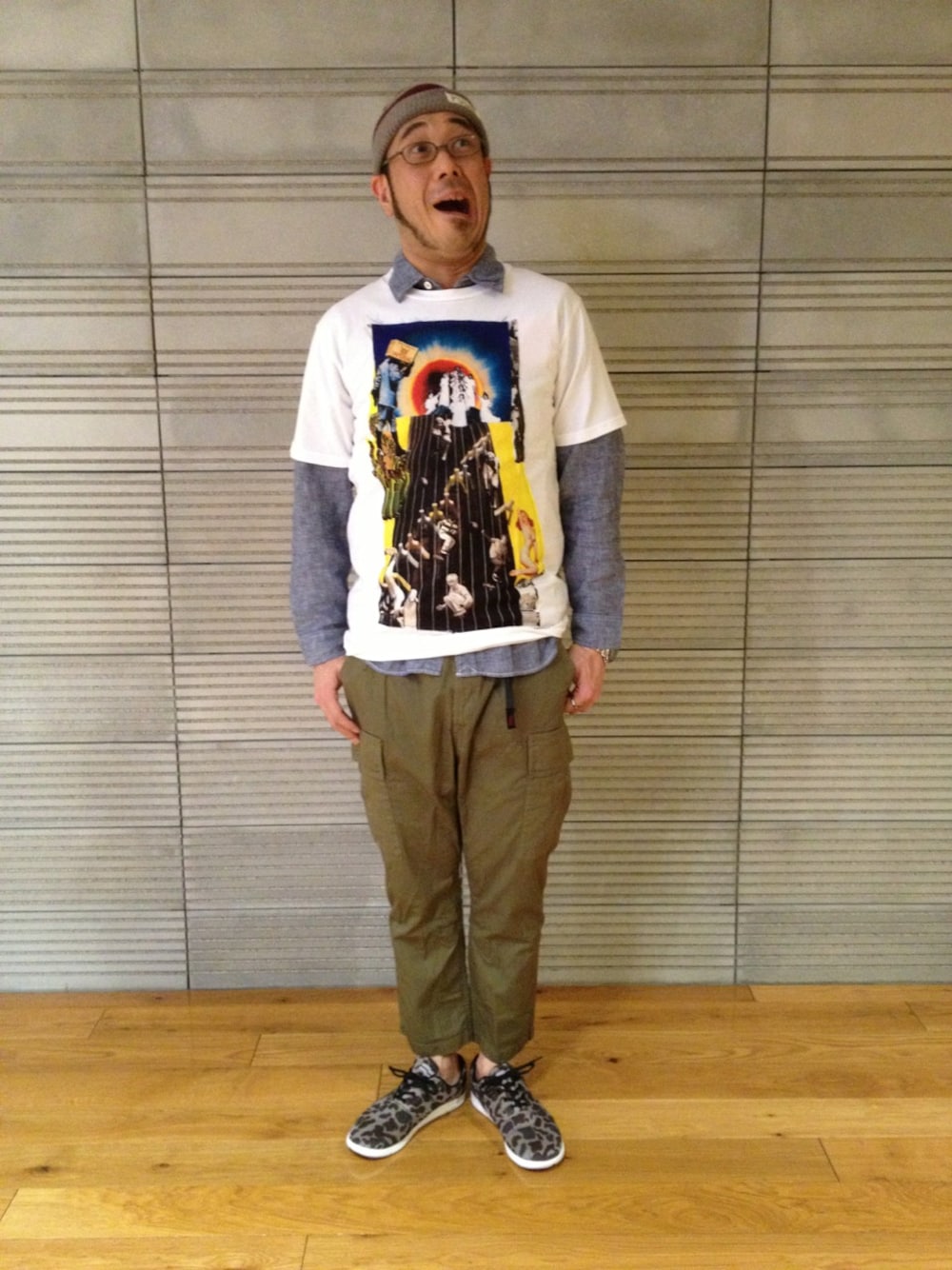 今回は春真っ盛りのコーディネートです! シャツにカットソーを重ね着する事によって、印象を軽くしました! ボトムスをショーツにしても良いですよ♪