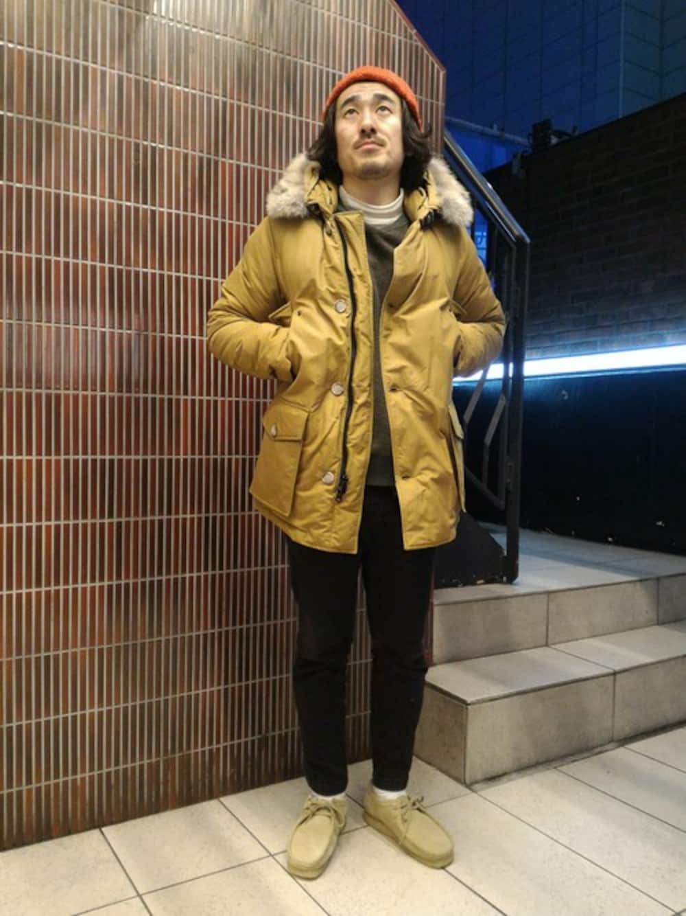 WOOLRICH ARCTIC PARKAコーディネート② 少し明るめのアウターも、着てみるととても馴染み良いですよ。