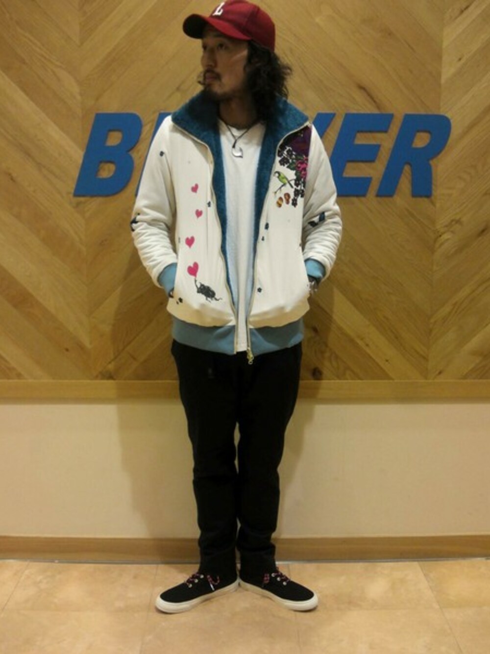 粕谷のブルゾン「BOHEMIANS(ボヘミアンズ) Reversible Zip Jacket "Boa Garden" Men's (4)」を使ったコーディネート