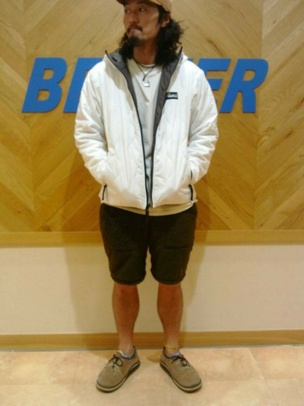 アウターにショーツのバランスが大好きです。 あえてスパッツも履かずにコーディネートしました。 定番のプリマロフトジャケットもホワイトをセレクトして爽やかさを意識しました。