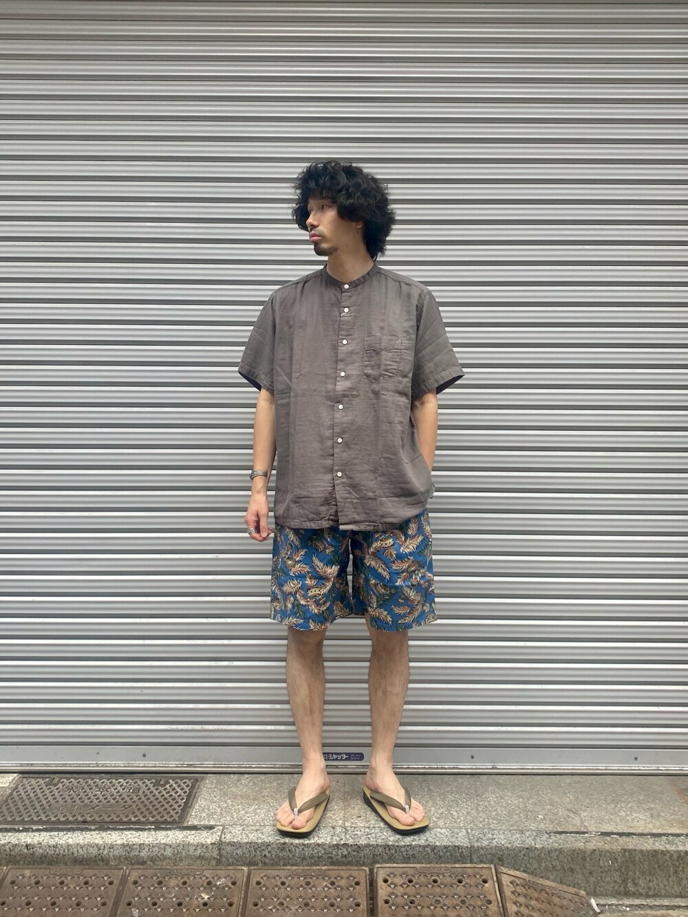 ノーカラーシャツ×柄ショーツ😄