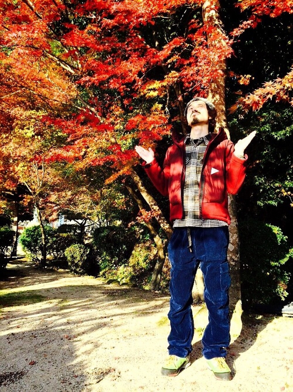 紅葉にも負けない紅葉カラーの『and wander』のパーカーは軽量で保温力抜群なのでお気に入りです☆